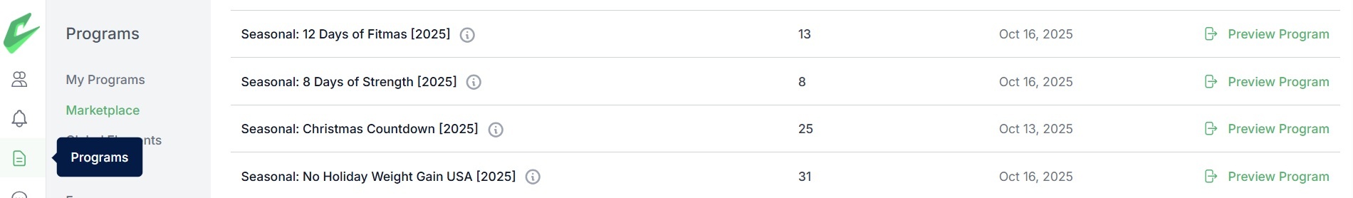 Since this is a popular program, the branded funnel, automations, and marketing emails will be added to your account on October 20. You could also use this funnel to run the 12 Days of Fitmas or the No Holiday Weight Gain program.